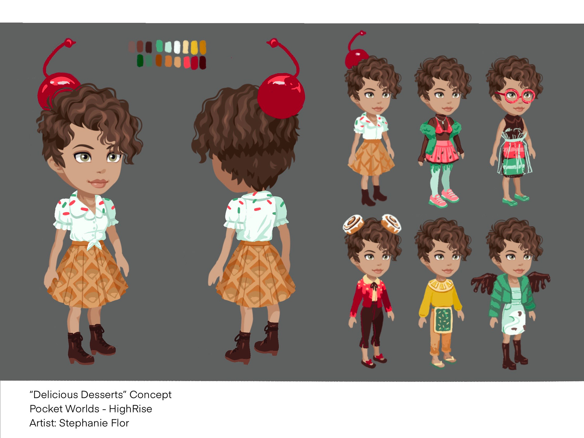 This concept was created for the popular game HighRise for their "Delicious Desserts" collection to add to their thriving in-game economy of eye-catching fashion and accessories.